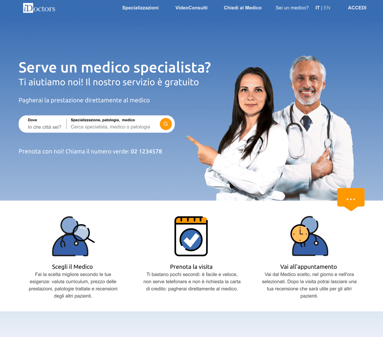 In questo progetto ho analizzato e riprogettato la user experience del sito web di iDoctors, uno dei portali italiani più diffusi per la prenotazione online di visite mediche ed esami diagnostici.